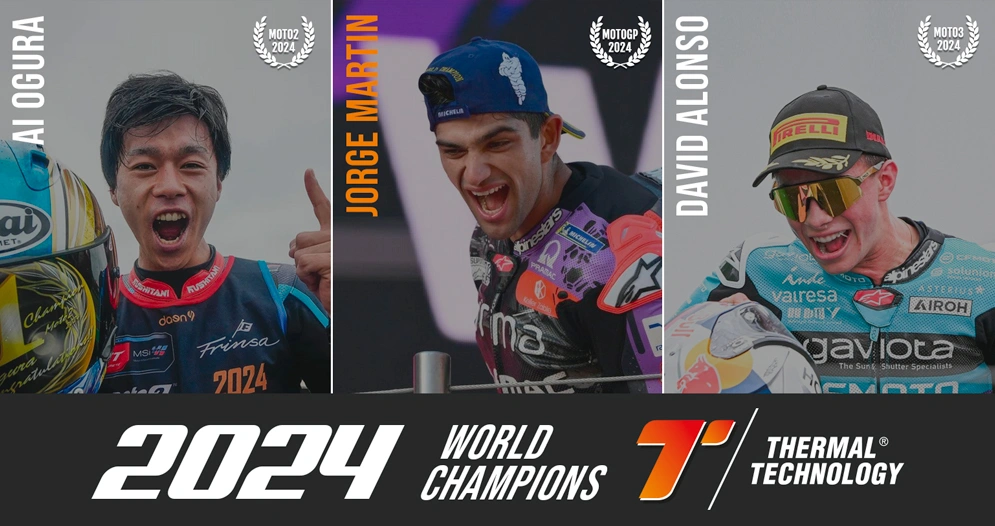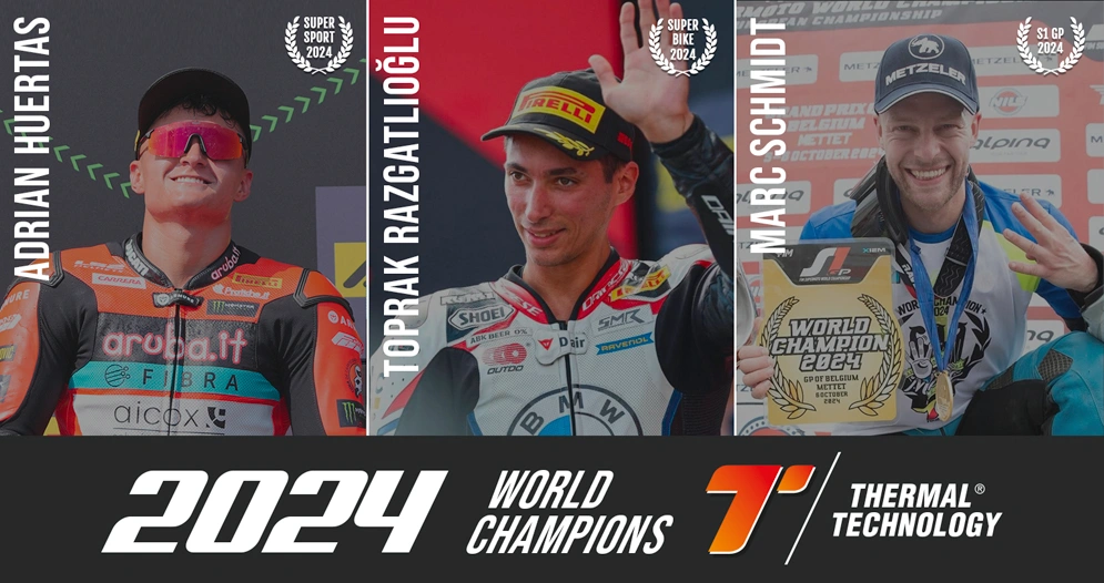 ThermalTechnology 使用のMotoGP と Moto2、Moto3、SBK のBMWチームが2024シーズンのチャンピオンを獲得